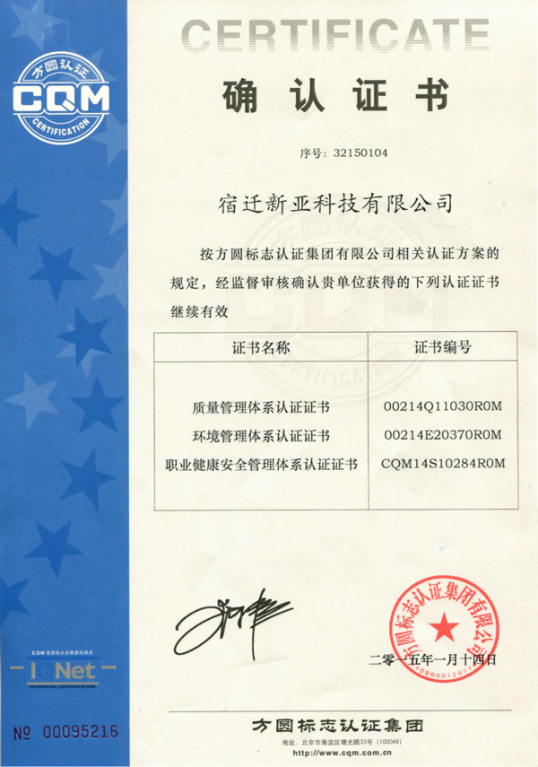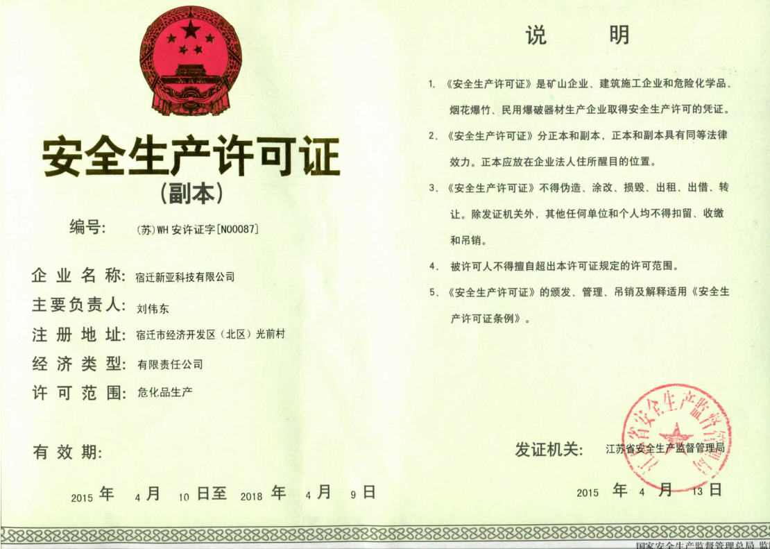 Suqian Xinya Technology Co., Ltd. was founded as Jiangsu Xinya Chemical Co., Ltd.In 2010,was moved into Suqian city.